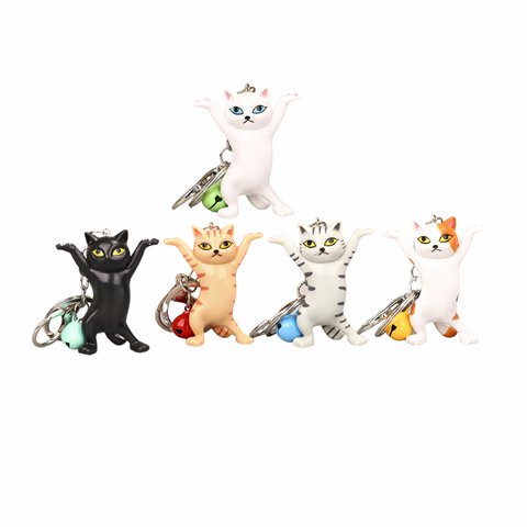 Engraçado Cartoon Dança Gato Metal Keychain Branco Preto Laranja Cinza Kitten Bell Trinket Car Keyring Saco Casal Pingente Pen Holder